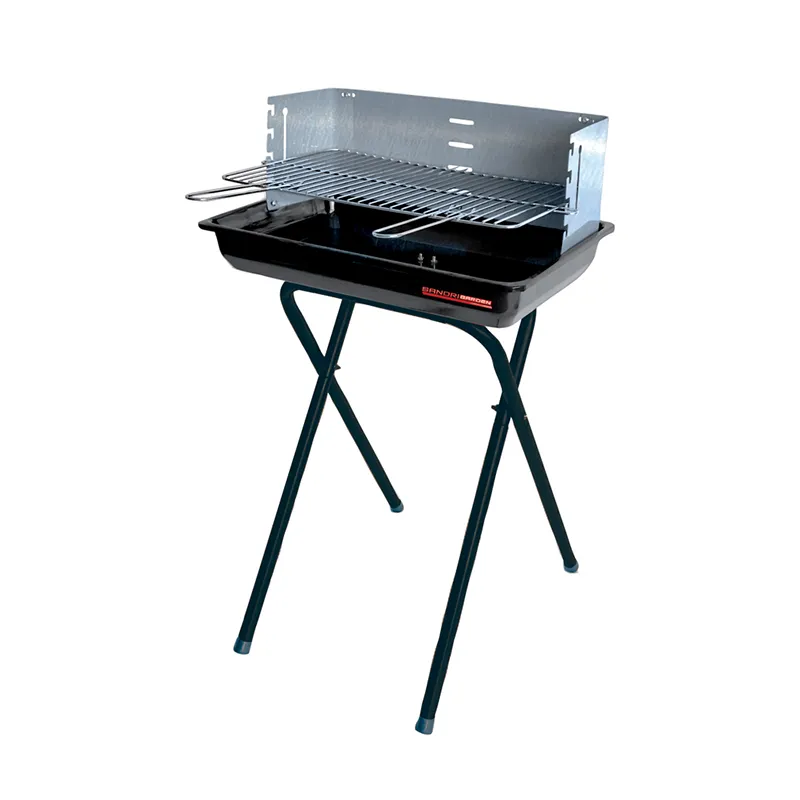 Il barbecue con gambe a cavalletto ha un piano di cottura di 47×28 cm e un’altezza di 78 cm. Dotato di una pratica cappa paravento, è ideale per cucinare all’aperto, proteggendo il fuoco dal vento e garantendo una cottura uniforme e ottimale per le grigliate.