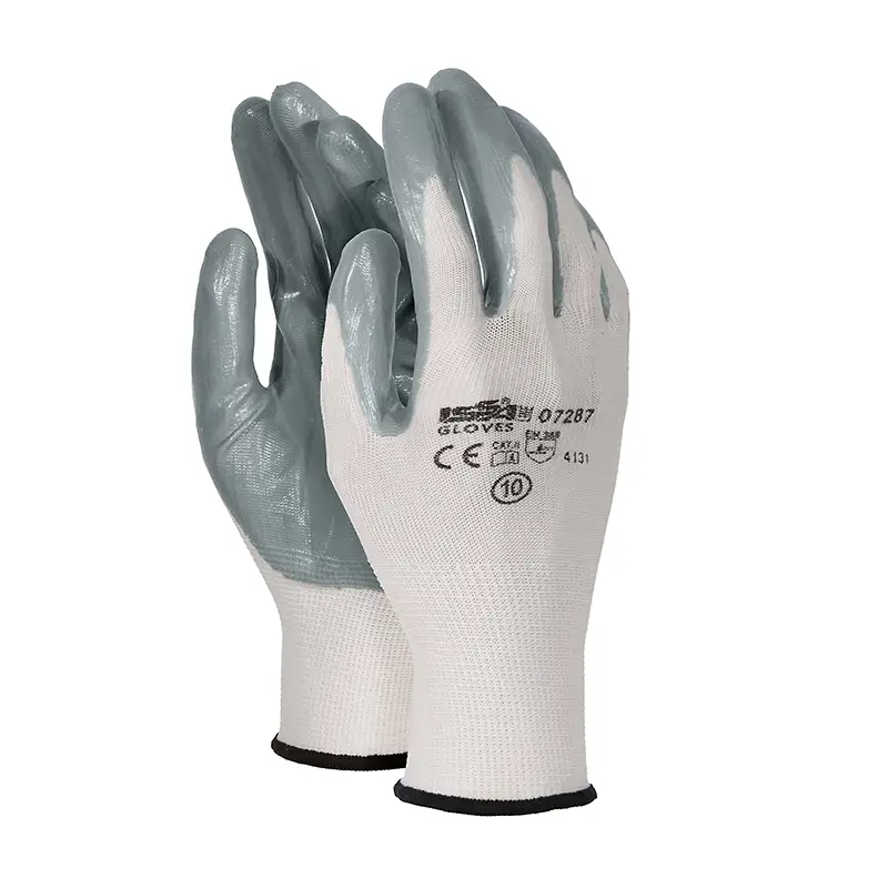 Guanto Glovex in nitrile con fodera in filo di nylon, colore bianco, disponibile in taglia 8, 9, 10 e 11.